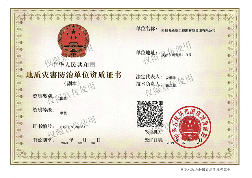 川勘集團(tuán)視保民平安為己任,以防災(zāi)治災(zāi)為使命,依靠數(shù)十年技術(shù)磨礪與積淀、數(shù)百名優(yōu)秀專業(yè)骨干拼搏與奉獻(xiàn),足跡踏遍三分之二的國(guó)土,在西南、西北地區(qū)尤其是四川省的地質(zhì)災(zāi)害防治工作中為國(guó)家及各行業(yè)建設(shè)做出了重大貢獻(xiàn)。無(wú)論是“5·12”特大地震、“4·20”強(qiáng)烈地震的震后應(yīng)急排查,還是“丹巴縣城保衛(wèi)戰(zhàn)”——丹巴建設(shè)街后山滑坡應(yīng)急搶險(xiǎn)工程、“新時(shí)期萬(wàn)源保衛(wèi)戰(zhàn)”——萬(wàn)源向前廣場(chǎng)后山斜坡變形應(yīng)急搶險(xiǎn)工程、“北川地震遺址守護(hù)戰(zhàn)”——北川魏家溝泥石流治理工程;無(wú)論是創(chuàng)造世界奇跡——綿竹文家溝泥石流應(yīng)急治理工程,還是打造環(huán)境和諧樣板——寶興冷木溝泥石流治理工程、守護(hù)童話世界——九寨溝景區(qū)地質(zhì)災(zāi)害監(jiān)測(cè)預(yù)警工程、建設(shè)城市森林公園——成都高新東區(qū)雷打石滑坡治理工程、補(bǔ)妝閬苑仙葩——閬中“風(fēng)水古城”南津關(guān)景區(qū)危巖治理工程都彰顯了川勘人不斷地努力和不懈地追求!