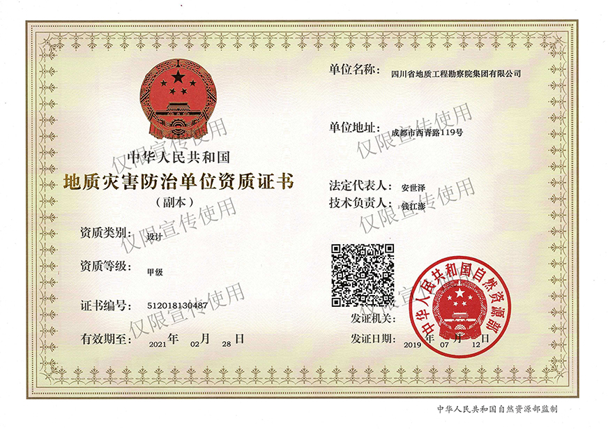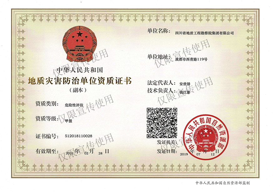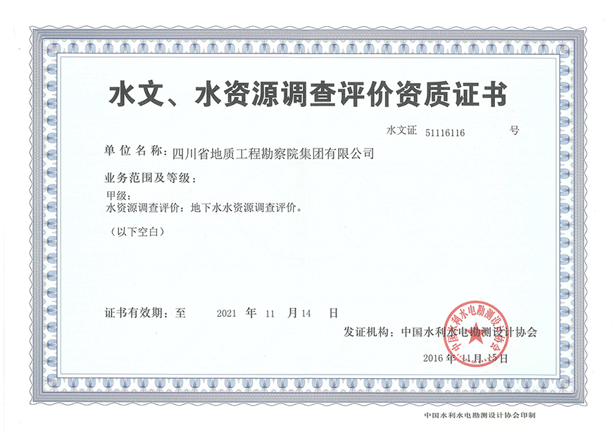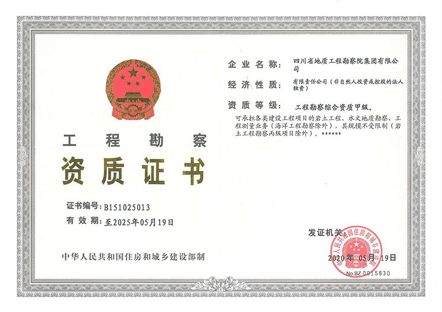 川勘集團(tuán)擁有工程勘察綜合類,地質(zhì)勘查,測(cè)繪,地質(zhì)災(zāi)害評(píng)估和治理工程勘查設(shè)計(jì)、施工、監(jiān)理,城鄉(xiāng)規(guī)劃編制,水利行業(yè)設(shè)計(jì),環(huán)境工程專業(yè)設(shè)計(jì),水利水電工程、建筑工程、市政公用工程、公路工程施工總承包,地基基礎(chǔ)工程、建筑裝修裝飾工程、環(huán)保工程專業(yè)承包,檢驗(yàn)檢測(cè)機(jī)構(gòu)(CMA),水資源論證,水文與水資源調(diào)查評(píng)價(jià),土地規(guī)劃?rùn)C(jī)構(gòu),四川省環(huán)境污染防治工程等級(jí)評(píng)價(jià)、地震安全評(píng)價(jià)等甲(壹)、乙(貳)級(jí)資質(zhì)、行業(yè)認(rèn)證30余項(xiàng)。