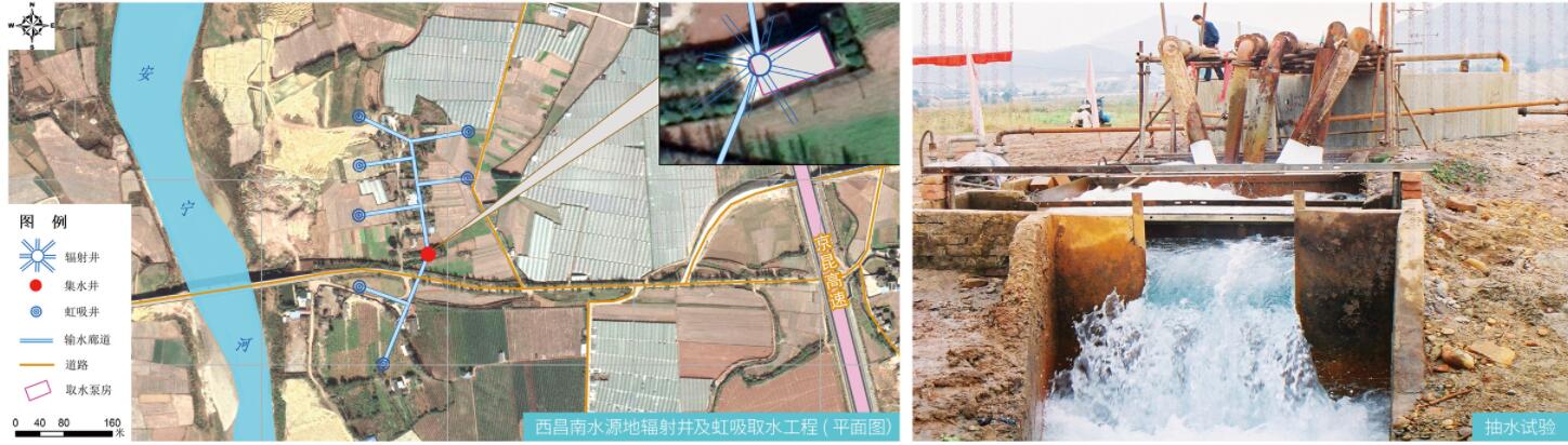 2001年川勘集團(tuán)研發(fā)的“大口徑輻射井+虹吸井取水工藝”建成了取水量為2.6萬立方米/日的地下水取水工程,成功解決了成都鐵路局西昌南片區(qū)5萬多人的生活用水、站場及列車等生產(chǎn)用水之需,成為大流量開發(fā)利用地下水資源的典型成功范例。