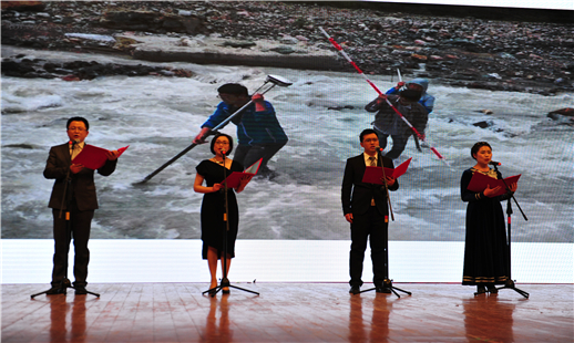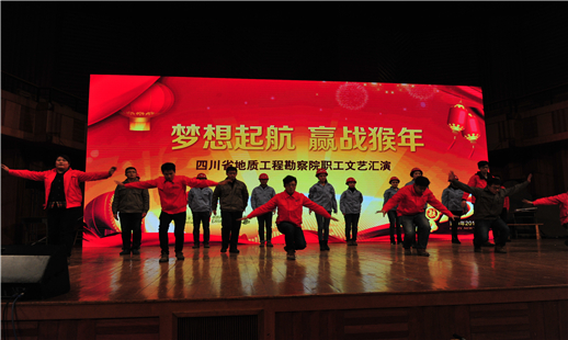 此次文藝匯演16個(gè)節(jié)目緊緊圍繞抒發(fā)地勘情懷、弘揚(yáng)地勘精神、傳播地勘文化的主題展開,大合唱、獨(dú)唱、小品、舞臺劇、舞蹈、武術(shù)等節(jié)目形式豐富多彩,個(gè)個(gè)節(jié)目都是精品?!端L流、文永攜》、《深山營救》展現(xiàn)了在“5.12”汶川特大地震、蘆山“4.20”強(qiáng)烈地震后該院職工奮戰(zhàn)在抗震救災(zāi)一線勇挑重?fù)?dān)、甘于奉獻(xiàn)的精神;《使命夢想我和你》、《地質(zhì)隊(duì)員相親記》、《相親相愛》、《勘探隊(duì)員之歌》展現(xiàn)了地勘院人熱愛地質(zhì)事業(yè),獻(xiàn)身地質(zhì)事業(yè)的情懷;《荒野趣事》、《背起行囊》等節(jié)目原型都來源于工作場景,有很強(qiáng)的感染力;《追尋》、《不再猶豫》、《我的少女時(shí)代》等節(jié)目展示了我院年輕人蓬勃向上的朝氣。全場觀眾在兩個(gè)半小時(shí)的節(jié)目盛宴中,應(yīng)接不暇,笑聲不斷,喝彩聲此起彼伏,掌聲經(jīng)久不息。
