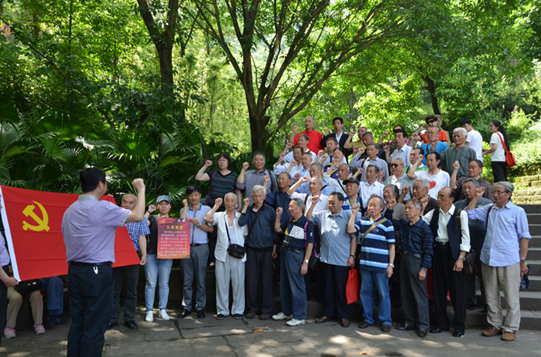 在白公館,離退休黨員面對鮮紅的黨旗,高舉右手,莊嚴(yán)地重溫入黨誓詞,字句鏗鏘,表達(dá)了全體黨員堅定共產(chǎn)主義理想,雖然離開了工作崗位,仍然支持單位發(fā)展,擁護(hù)國家改革發(fā)展,堅定黨的發(fā)展信念。