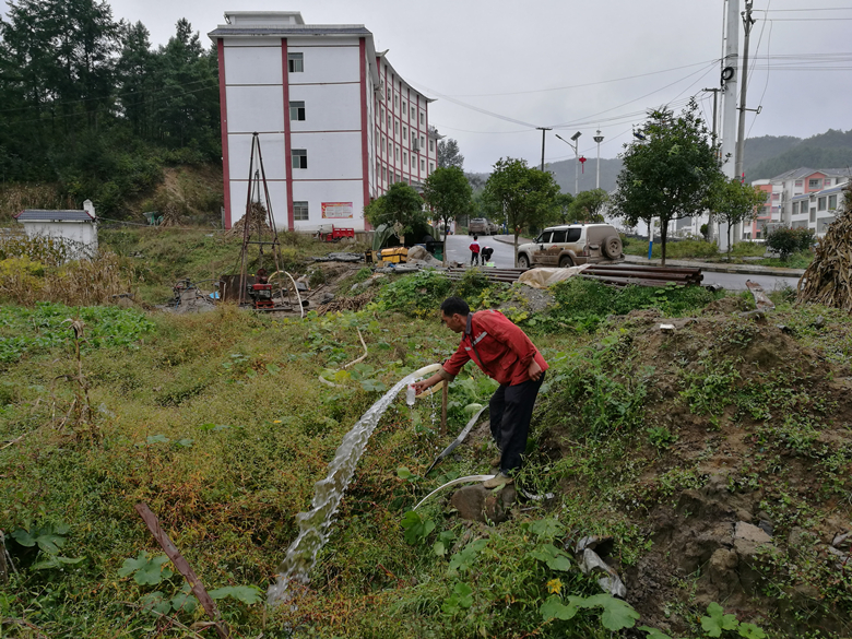 專業(yè)引領(lǐng),探采結(jié)合,成井出水。項目組充分發(fā)揮我院水文地質(zhì)、水文物探、鉆探多專業(yè)優(yōu)勢,技術(shù)人員協(xié)同攻關(guān),首先通過地質(zhì)分析尋找富水地段和儲水構(gòu)造。然后布置物探進行勘查。最后針對工作區(qū)地層巖性和地質(zhì)構(gòu)造特點,進行成井設(shè)計,并按設(shè)計進行施工。項目組設(shè)計的4口探采結(jié)合井已全部完成,成井率100%。尤其是布設(shè)在貴州省赫章縣安樂溪鄉(xiāng)鄉(xiāng)政府的探采結(jié)合井(編號:ZK29),該井井深160.2米,水位位于井口,微承壓,出水量500立方米/天左右時的穩(wěn)定降深不到30米,該井可補充安樂溪鄉(xiāng)集中供水,惠及人口近萬人,有效的緩解了安樂溪鄉(xiāng)群眾飲水困難的問題,受到了安樂溪鄉(xiāng)政府和赫章縣國土資源局的高度贊揚。