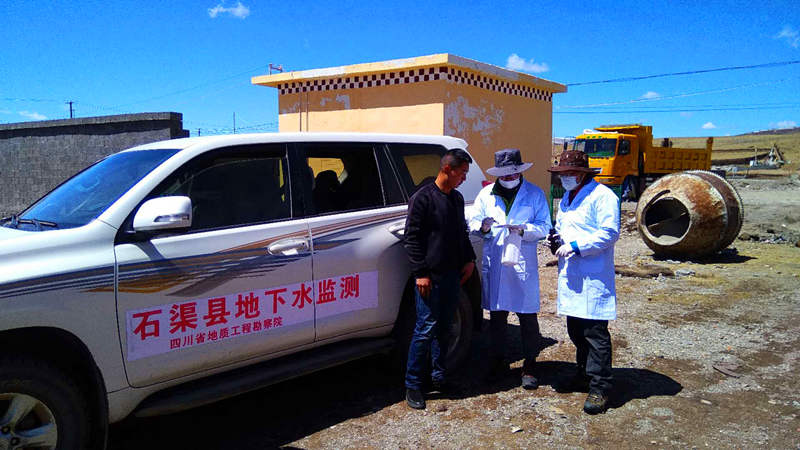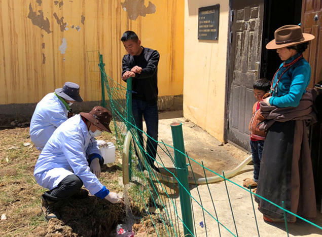 4月18日,項目組人員翻山越嶺,到達了位于海拔4300m的石渠縣城,開展石渠縣地下水監(jiān)測工作。換上白大褂,戴上口罩和乳膠手套,項目組人員對縣城周邊包蟲病防治地下水取水井進行了全面的檢查和了解,做好相關(guān)調(diào)查記錄,并對典型井點進行了采樣工作,為石渠縣包蟲病區(qū)廣大人民群眾安全飲水保駕護航。