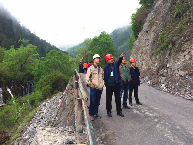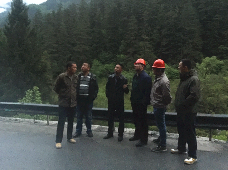 險情發(fā)生后,九寨溝國家級自然保護區(qū)管理局劉春龍局長、業(yè)主代表澤軍、我院九寨溝89處地災(zāi)治理項目部現(xiàn)場總協(xié)調(diào)人陳新、二標段執(zhí)行經(jīng)理何海清緊急趕到現(xiàn)場,共同商討對于該危巖的排危方案。