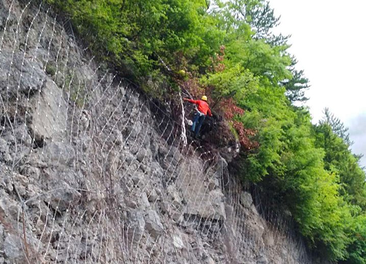 排危人員首先使用液壓鉗剪斷已經(jīng)破壞的被動網(wǎng),再用撬棍、鋼釬清理危巖體周邊的松動土石和樹枝,隨即使用撬棍從危巖后部開始撬動大危巖。清理過程中,兩側(cè)攔停了大量的車輛和人員,面對急于通過的人員,管制人員耐心勸說,阻止想要冒險通過的人員車輛,確保排危安全。