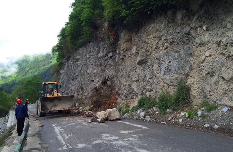 在管理人員的耐心指揮下,排危人員對坡面殘留的危石進行了仔細地清除,在確定沒有松動危石后,下部裝載機對路面堆積的土石體進行了清理,我院管理人員協(xié)助路橋的交通指揮員,對積壓的車輛進行了分批次放行,確保所有積壓車輛安全迅速地通過排危路段后,交通得到了恢復(fù),將現(xiàn)場的道路交通維護工作移交給四川路橋,結(jié)束了排危工作。