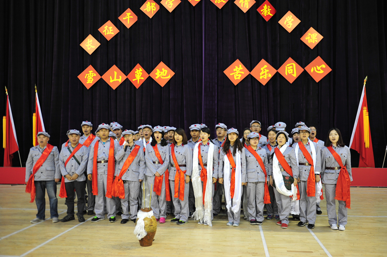培訓(xùn)期間,隊(duì)伍打紅旗,學(xué)員穿紅軍服、戴紅軍帽、背紅軍包、纏綁腿、系皮帶、戴校徽,出行列隊(duì)整齊有序,成為一支紅色勁旅。學(xué)員們通過(guò)“吃紅軍飯、唱紅軍歌、走紅軍路”的培訓(xùn)形式,經(jīng)過(guò)長(zhǎng)征歷史理論教學(xué)、參觀馬爾康紅軍長(zhǎng)征紀(jì)念館現(xiàn)場(chǎng)教學(xué)、過(guò)草地穿越日干喬大沼澤體驗(yàn)教學(xué),學(xué)習(xí)紅軍隊(duì)伍的堅(jiān)強(qiáng)斗志,體驗(yàn)紅軍長(zhǎng)征中的艱難困苦。